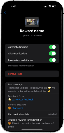 The Client Can Share The Card With Friends And Earn Points. Expand Your Customer Base At No Cost.